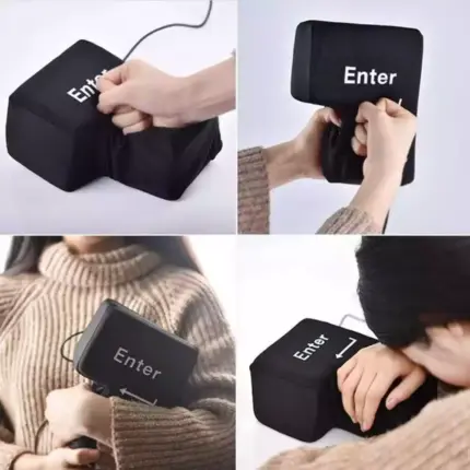 Almohada funcional que se conecta a tu computadora como tecla Enter. Suave, cómoda y fácil de usar, perfecta para aliviar el estrés o descansar. Compatible con Windows y Mac, con un tamaño grande y práctico.