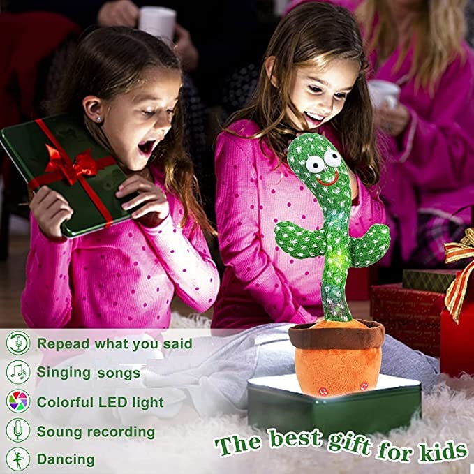 Este no es un cactus cualquiera… ¡es una fiesta con forma de planta! El Cactus Bailarín Interactivo es el juguete perfecto para niños, adultos e incluso mascotas. Con más de 20 canciones, movimientos animados, luces LED y la divertidísima función de repetición de voz, transforma cualquier momento en un espectáculo lleno de risa y alegría. Fabricado con felpa suave y segura, es ideal para bebés desde los 3 meses, y su diseño recargable lo hace perfecto para llevarlo a donde vayas sin preocuparte por pilas. Ya sea como regalo original, decoración con personalidad o compañero de juegos, este cactus será el alma del lugar donde lo pongas. ¡Diversión garantizada para toda la familia!