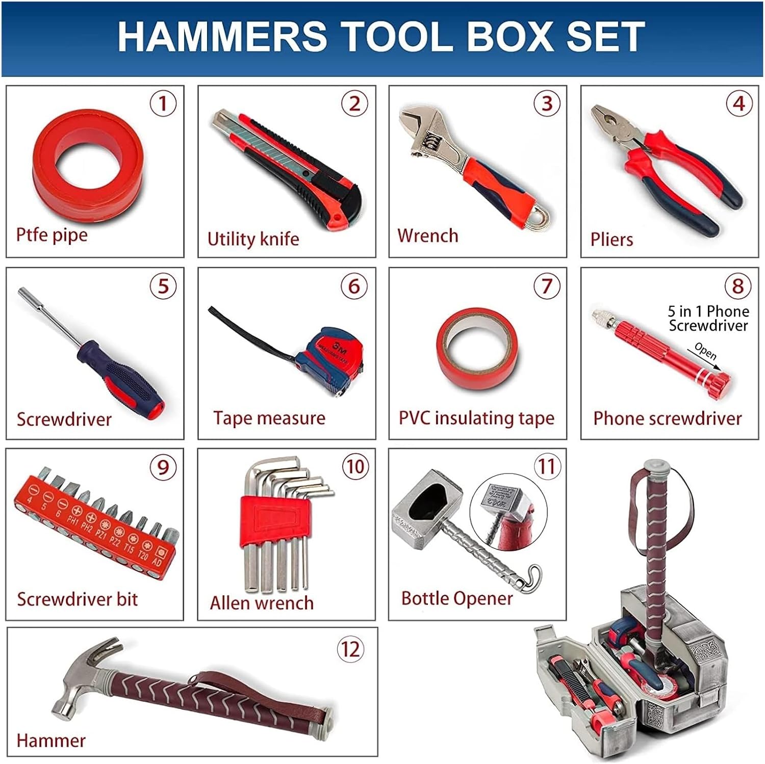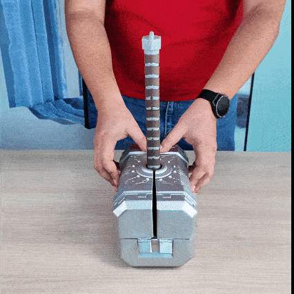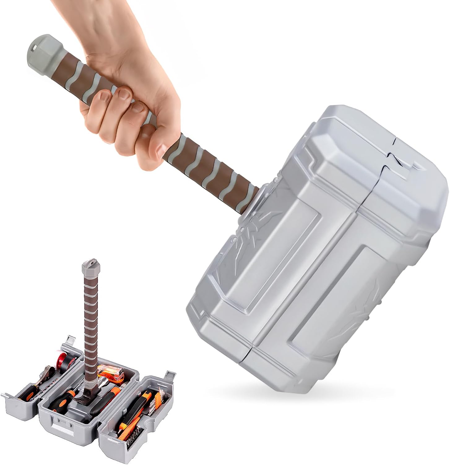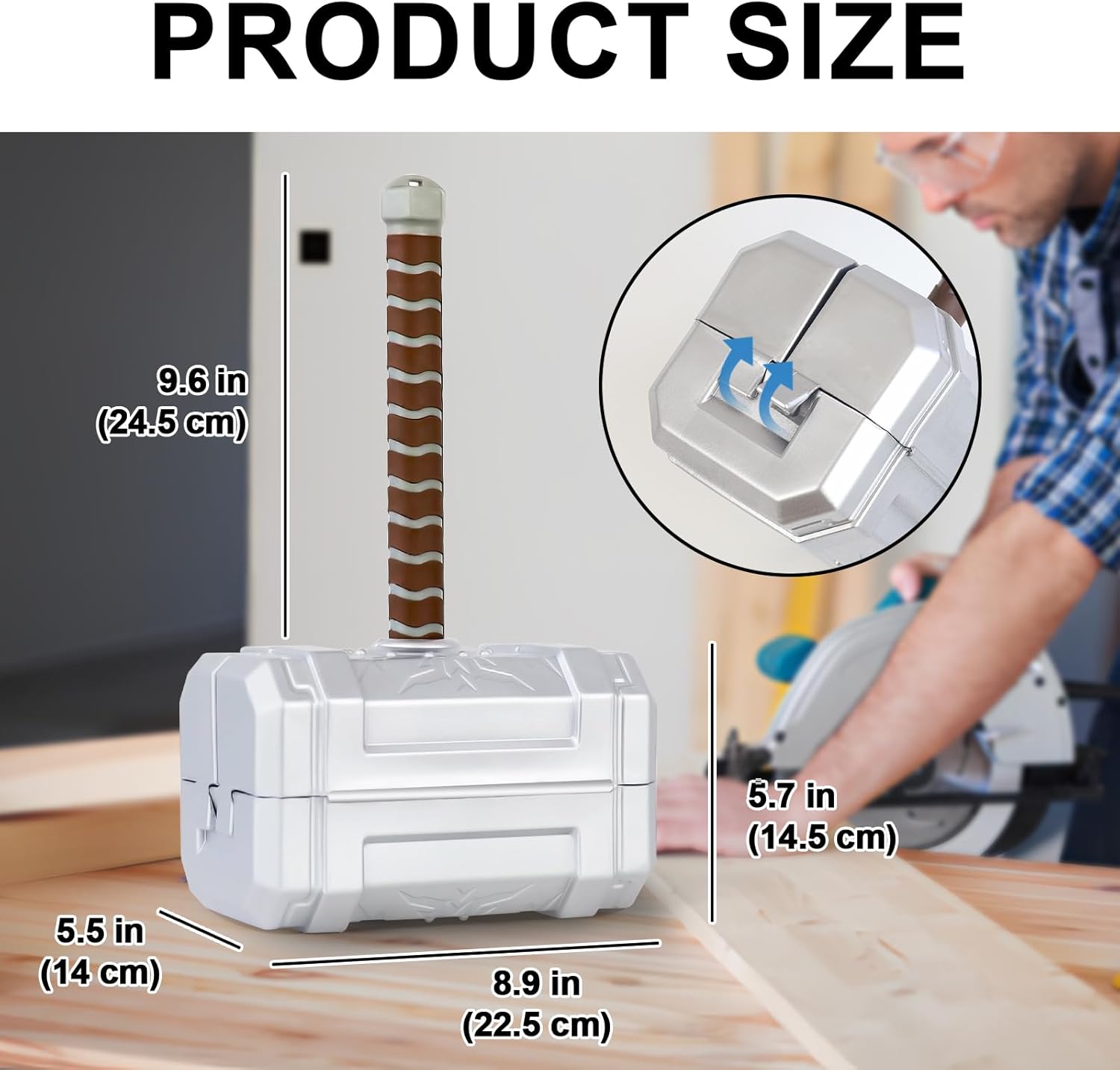 Inspirada en el mítico Mjolnir, esta caja de herramientas no solo imita el icónico martillo de Thor con un nivel de detalle impresionante, sino que también funciona como un set real de herramientas. Su apariencia la convierte en una pieza decorativa única, perfecta para exhibir tanto en un taller como en una oficina o sala de estar.