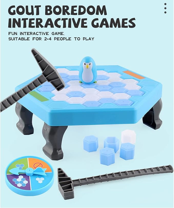 • Fácil de jugar: Ensambla el hielo, coloca el pingüino y sigue las instrucciones del plato giratorio para golpear el hielo. Continúa hasta que el pingüino caiga, ¡una dinámica sencilla y entretenida!