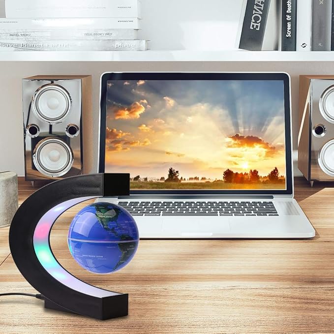 Este mapamundi flotante combina tecnología magnética y luces LED para lograr un efecto antigravedad: la esfera gira suavemente en el aire, iluminando el mundo en 360° sin cables visibles. Con base táctil y diseño minimalista, es ideal como pieza decorativa, lámpara nocturna o elemento educativo que despierta la curiosidad por geografías. Su base contiene un imán potente que mantiene estable la rotación automática.