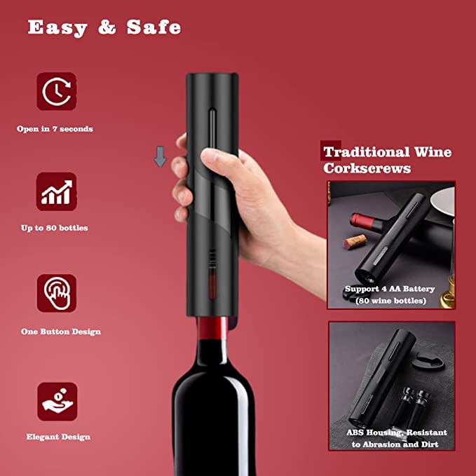 Ideal para fiestas, aniversarios o noches entre amigos. Agiliza el descorche y da un aire sofisticado a cualquier mesa, sin esfuerzo y sin riesgos de accidentes al abrir.