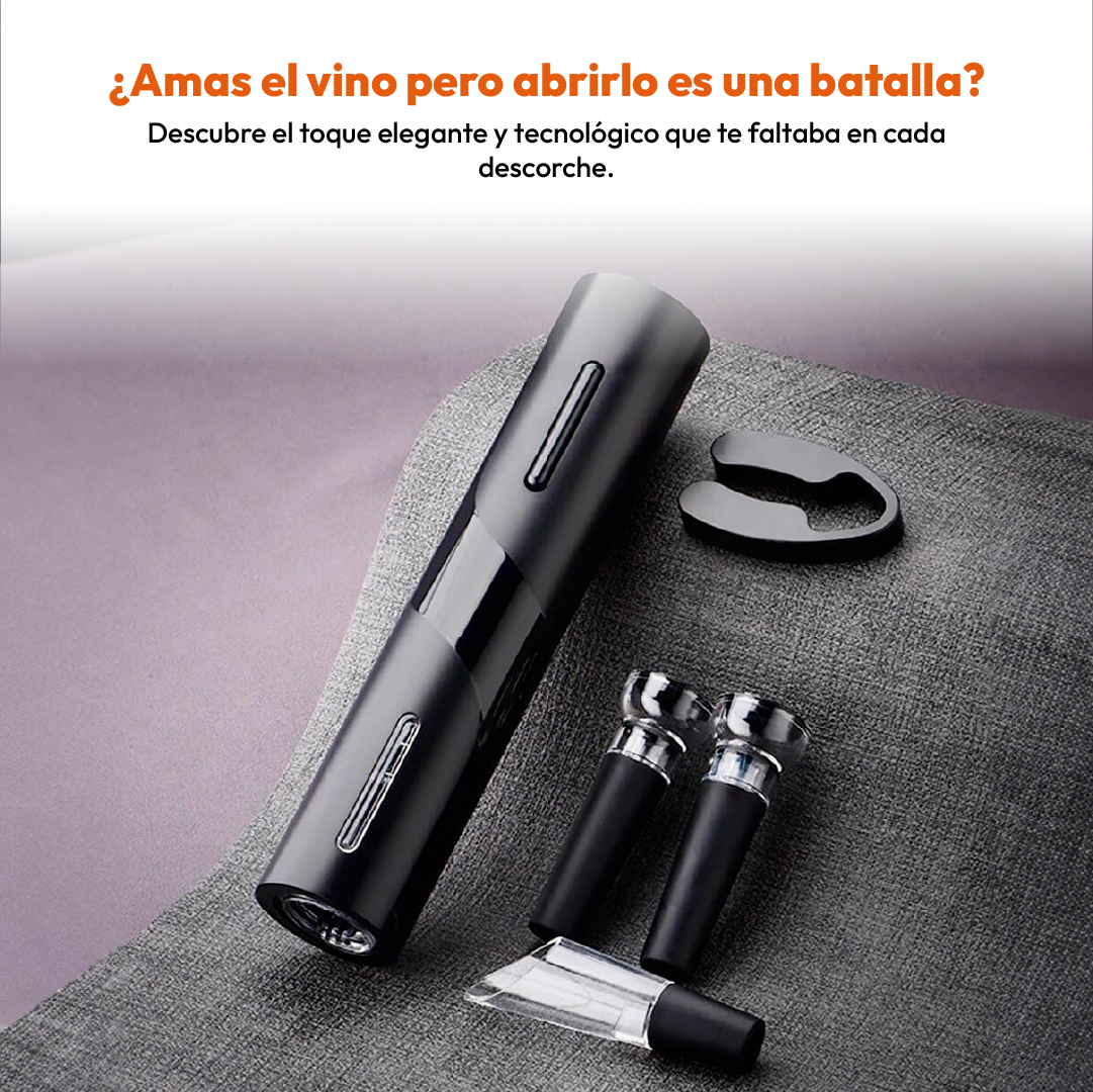Descubre el Set Eléctrico de Vino, un kit completo que transforma el ritual de descorchar y servir en una experiencia sofisticada y sin esfuerzo. Ideal para aficionados y conocedores del vino, este conjunto incluye sacacorchos automático, cortador de cápsula, aireador/vertedor, tapón de vacío y base organizadora, todo diseñado para facilitar y embellecer cada copa.