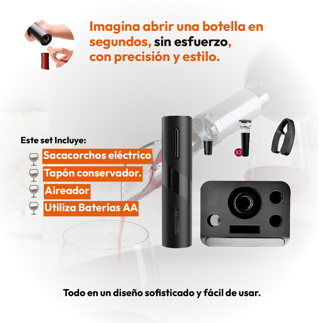Haz que cada comida se sienta como una ocasión especial. Con este set, abrir una botella y servir vino se vuelve una experiencia elegante, práctica y libre de complicaciones.