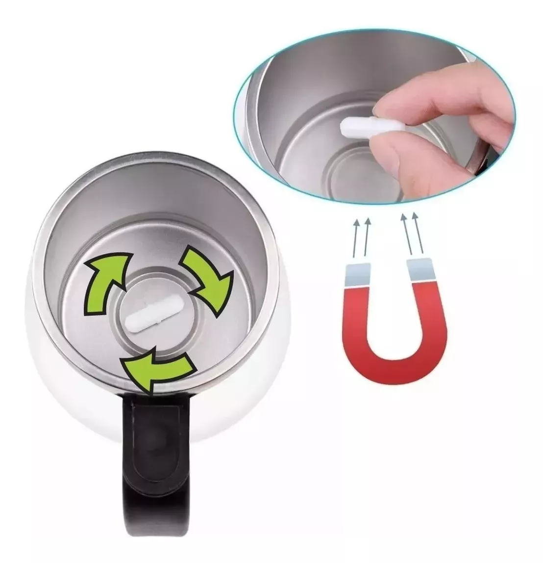 Disfruta de tus bebidas favoritas con la taza magnética auto agitadora, fabricada en acero inoxidable de grado alimenticio. Con un potente agitador magnético, mezcla café, té o batidos en segundos, sin necesidad de una cuchara. Su diseño portátil, a prueba de derrames, y recargable por USB la hacen perfecta para llevar a cualquier lugar.