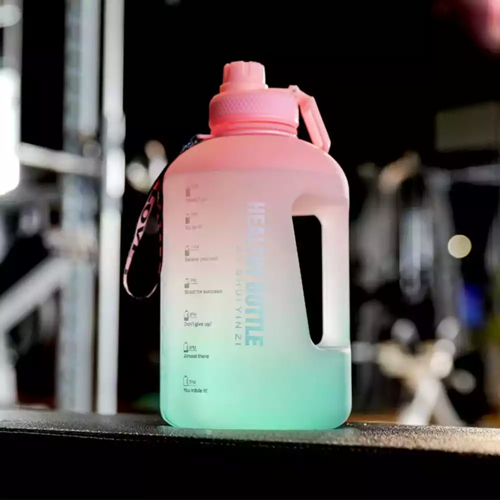 Botella de agua de gran capacidad de 2L a prueba de fugas con recordatorio de escala de tiempo, deportes al aire libre y fitness Características: • Diseño motivacional: le da motivación, le recuerda que debe mantenerse hidratado y beber suficiente agua durante todo el día. • volumen-marcadores de tiempo muy adecuados para medir el consumo diario de agua, es visualmente agradable verlo acercarte y acercarte a su objetivo y hacer que quiera alcanzarlo antes. • Apertura de una tecla: abra el pico con una mano para beber fácilmente. • Pajita de silicona: tiene una pajita de silicona emergente para proteger tus dientes. • Boca ancha: La boca ancha diseñada hace que sea fácil llenar la botella deportiva con hielo y fruta. • Cómodo de llevar: el hervidor de correa es ligero y se puede llevar fácilmente a actividades al aire libre. |